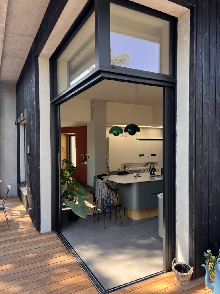 Une baie vitrée d’angle sans poteau, malgré ses dimensions impressionnantes, se manipule avec une aisance déconcertante.